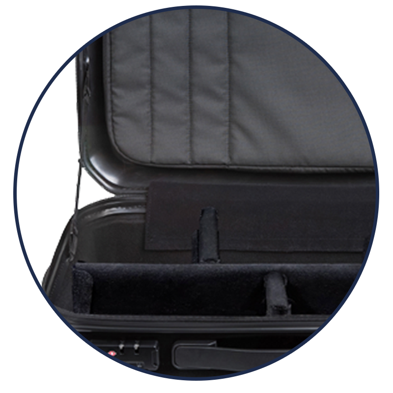 - Interior layer: Shell case “Easy Lock” Heavy duty polyamide fabric designed for dynamic interior configuration